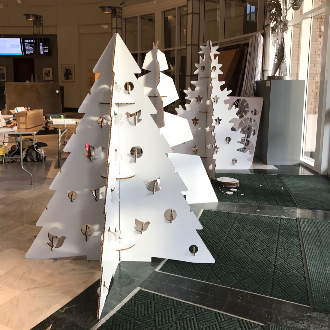 Además de la personalización manual, los árboles de cartón pueden fabricarse en distintos modelos, tamaños y colores, con opciones de impresión que incluyen gráficos o logotipos.