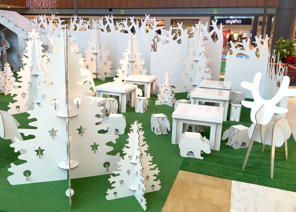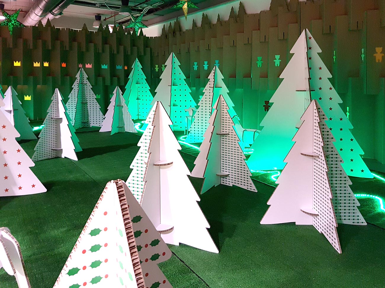 Este árbol de cartón permite incluir elementos como luces LED, adornos o pintura, convirtiéndose en un símbolo navideño que se adapta a cualquier estilo. También su versión XXL lo hace ideal para espacios públicos interiores, centros comerciales, hoteles, halls de empresas e instituciones.