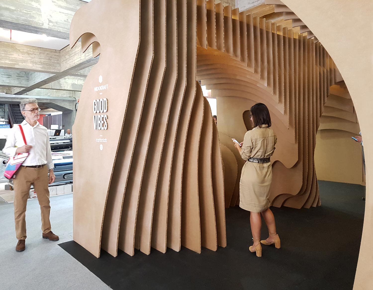Hemos aplicado este método con éxito en proyectos como la cubierta del auditorio del Caixaforum de Valencia y el stand en C!Print Madrid para la marca de cartón Nidokraft.