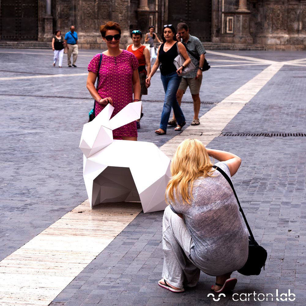 Instalación efímera. Gran conejo de cartón para el «Día del Papel» Instituto de Diseño Europeo de Madrid