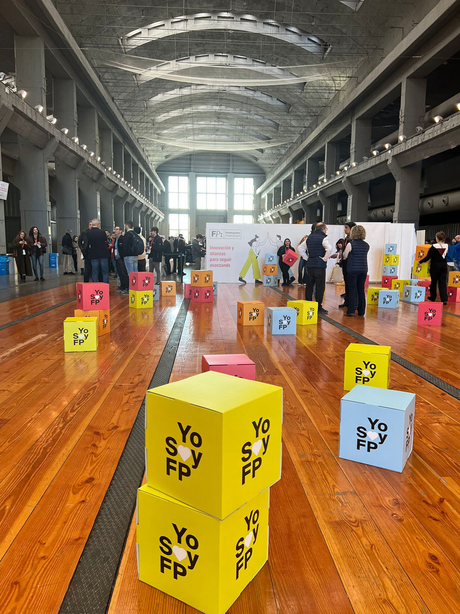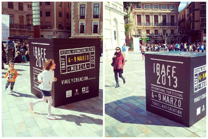 En la exposición dedicada a Francesco Tonucci en Granada también emplearon los cubos para la interacción. Las cajas de cartón que delimitaban la zona fueron personalizadas por los participantes en la actividad, convirtiéndosa también en soporte expositor de sus creaciones.