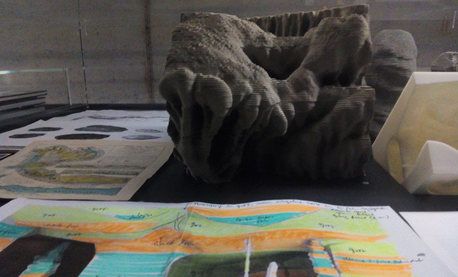 Unos documentos que permiten al visitante conocer más en detalle el proceso creativo que nutre la investigación de Thomas Demand en torno al tema de la gruta (grotto), y su recurrente presencia en la historia del arte y la arquitectura.
