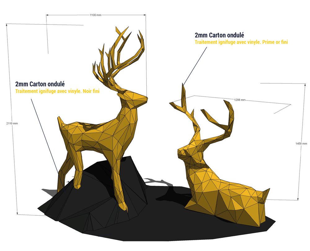 Una buena decoración navideña ecológica para centros comerciales empieza con un buen diseño. Integrar tu idea inicial con las nuestras y ubicarlas en el espacio disponible lleva unas dos semanas. Una vez representada en 3D, podrás comprobar si la distribución funciona y los volúmenes encajan. Es el momento de corregir cualquier variación indeseada. Una vez listos para el montaje, la previsión es que este se realice durante una jornada larga, quizá dos si el proyecto e muy grande. Hay que tener en cuenta que: