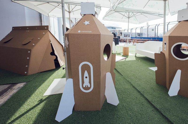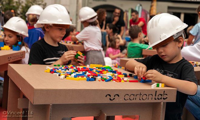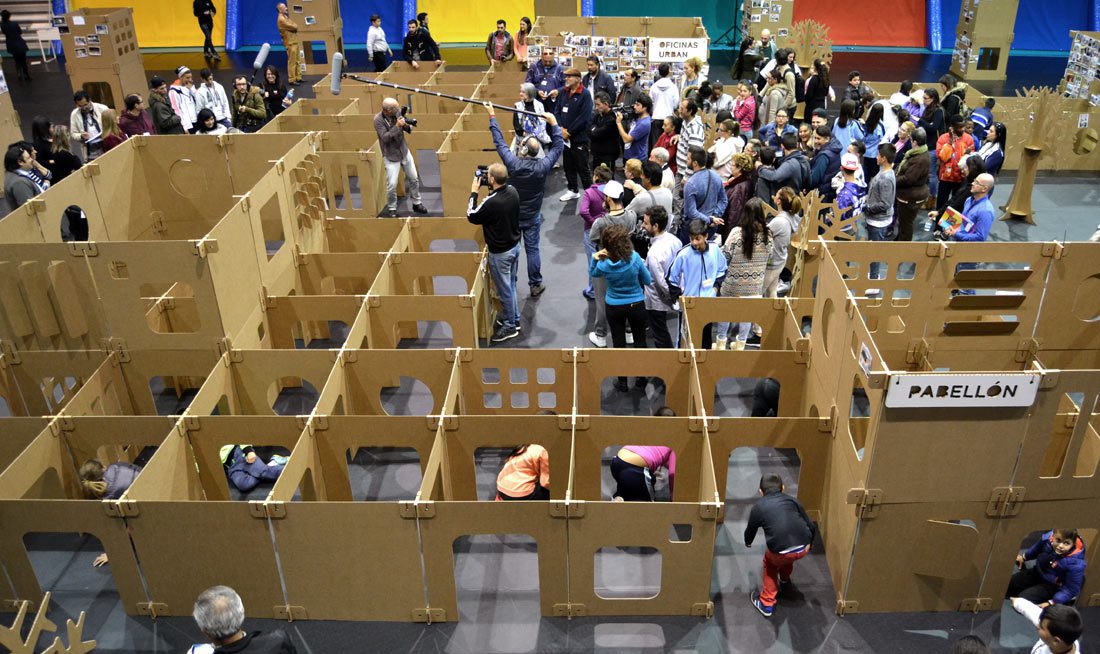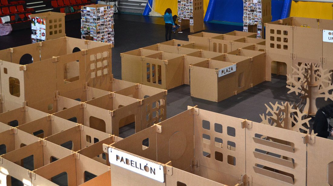 Este tipo de instalación se adapta fácilmente a espacios reducidos y puede ser desmontado y reutilizado. Su ligereza y resistencia hacen del cartón un material idóneo para proyectos efímeros que invitan a descubrir, jugar y colaborar.