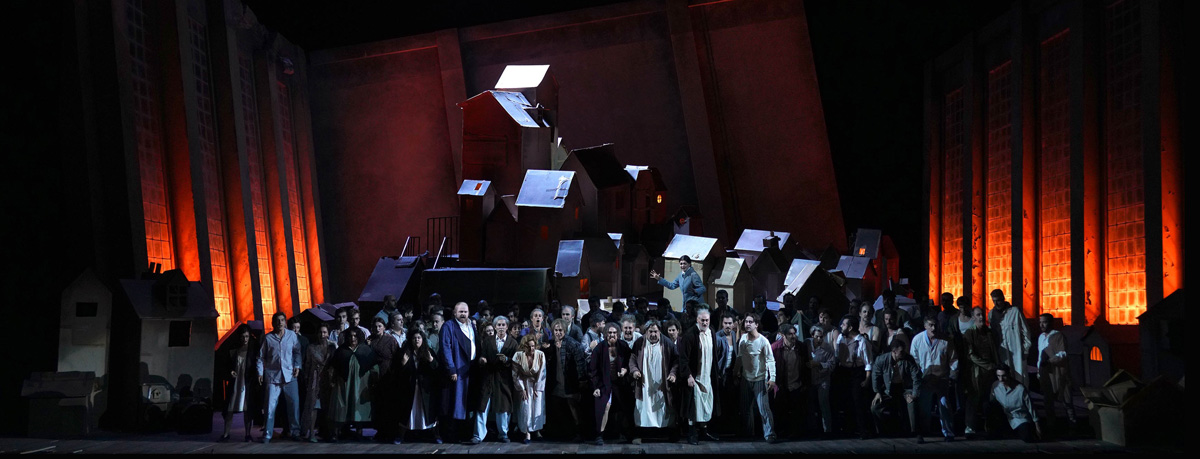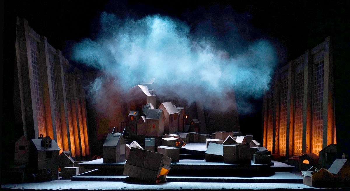 Quizá no relaciones la solemnidad de la ópera con el cartón. Pero sí, ya se han cruzado en varias ocasiones. Una de las muestras más espectaculares de lo que se puede conseguir con diseño de escenografía en cartón la tenemos en la ópera de Wagner ‘Los maestros cantores de Núremberg’, una producción del Teatro Real de Madrid para la que nos encargaron decenas de casas de cartón. Una imaginativa recreación de la ciudad diseñada por Caroline Ginet con la que los artistas podían interactuar.