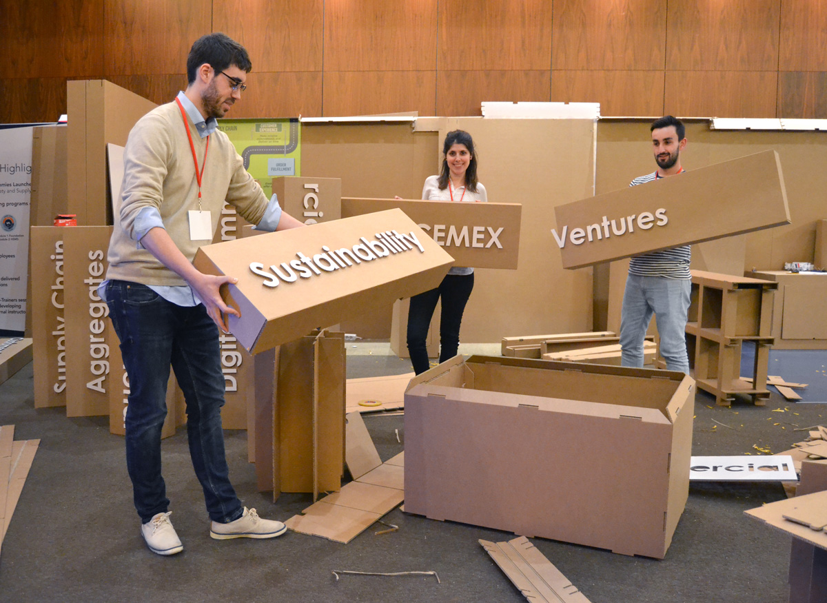 La primera impresión visual del evento se produce al llegar al punto de información. Todo lo que esperas de una recepción te lo ofrece el diseño en cartón. . Hay que orientar y enamorar al visitante a primera vista con muebles de todo tipo. La lista de recursos es larga: mostradores, taburetes, paneles informativos, portafolletos o percheros. La sencillez será tu mejor aliada, unida a la creatividad para personalizar y adaptarte al espacio. Eso te abrirá la puerta a propuestas tan originales como el mostrador de letras corpóreas del congreso internacional de CEMEX. (Madrid)