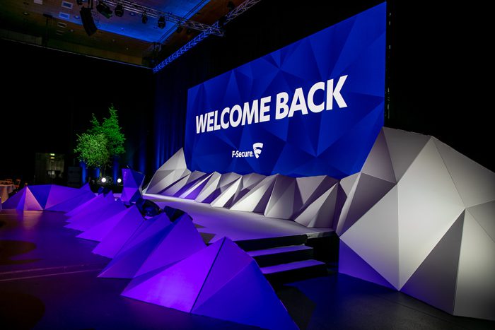 Montaje FSecure Munich. Diseño de eventos hoteles.