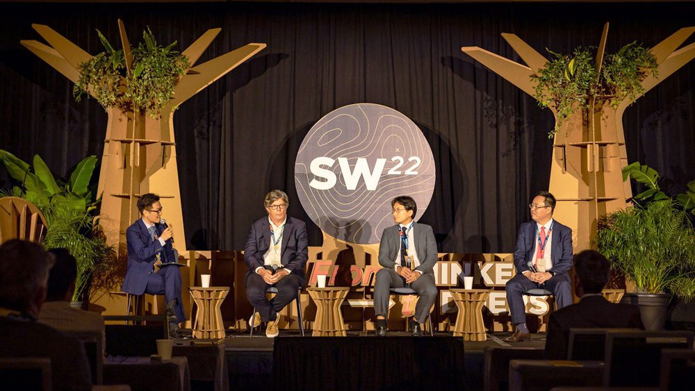 En el caso del hotel Hilton de Miami, la Semana de la Sostenibilidad de BID Invest contó con una combinación ganadora de árboles de cartón con vegetación natural, trasera personalizada y mobiliario modelo Brasilia.