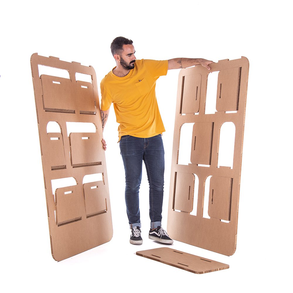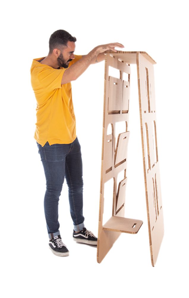 Las estanterías de cartón son una solución ligera, resistente y 100% ecológica perfecta para amueblar una casa, oficina, coworking o espacios de venta. Son tan ligeras como resistentes ( aguantan hasta 250 kg de peso).Al contrario que los muebles convencionales, el montaje de una estantería de cartón se realiza en pocos minutos, encajando unas piezas con otras, sin necesidad de adhesivos o herramientas especiales. Además de estar producidas con materiales certificados FSC, son 100% reciclables.