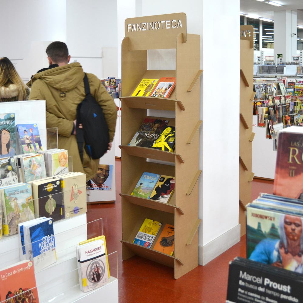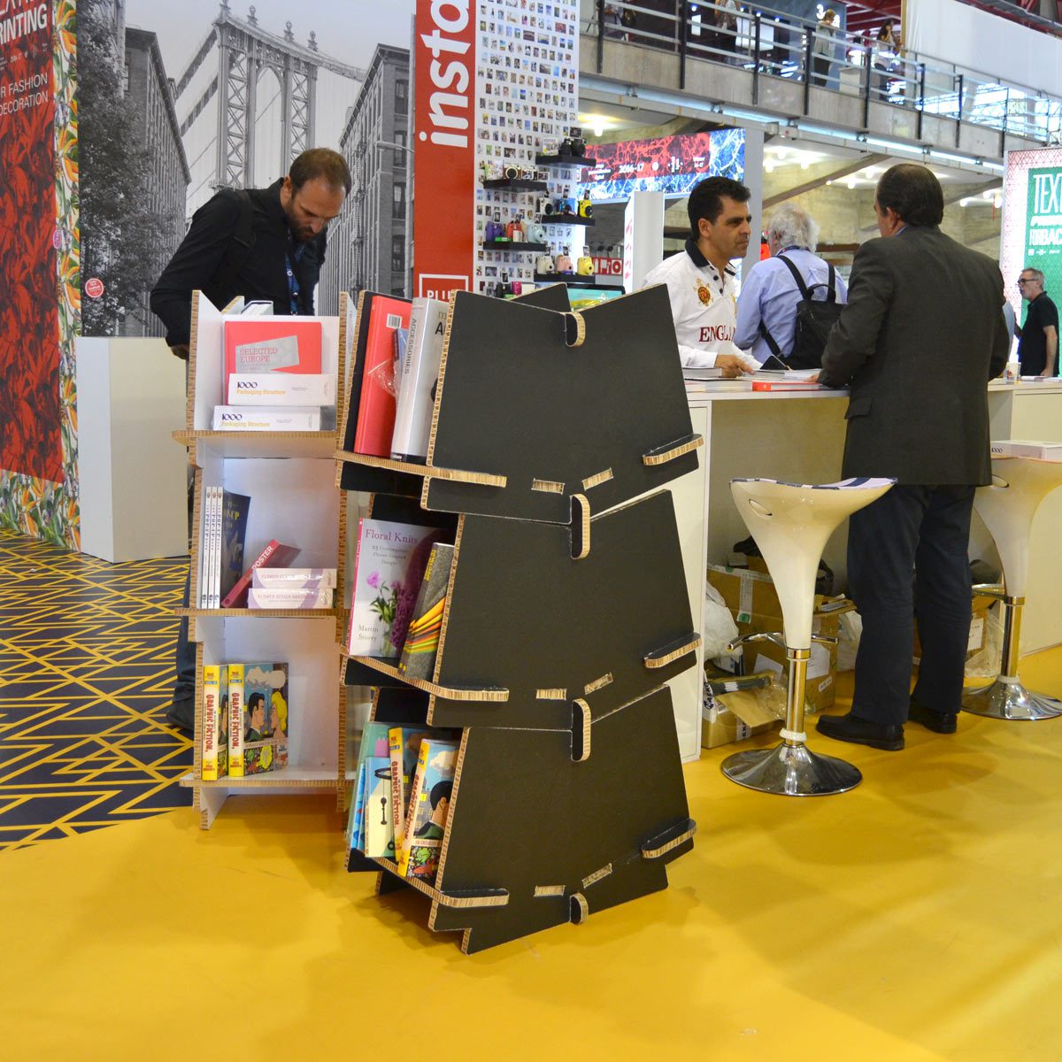 Se suele dar el caso de que al diseñar un modelo se incluya también su versión mini. Cuando creamos el expositor escalonado ocurrió así, ya que el carácter itinerante del tipo de cliente que utiliza ese producto (pequeños editores, artesanos, ilustradores…) y los espacios en los que suele mostrarlo requieren gran capacidad de adaptación. En ese contexto es donde destaca el pequeño formato, muy atractivo por su funcionalidad cuando el espacio es reducido.