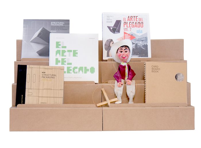 El diseño en cartón para librerías ofrece además la posibilidad de incorporar compartimentos extra de almacenaje. Así lo hemos hecho en alguno de nuestros modelos, aumentando la funcionalidad mientras nos ceñimos al espacio ocupado por el expositor.