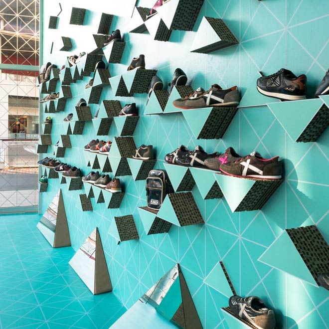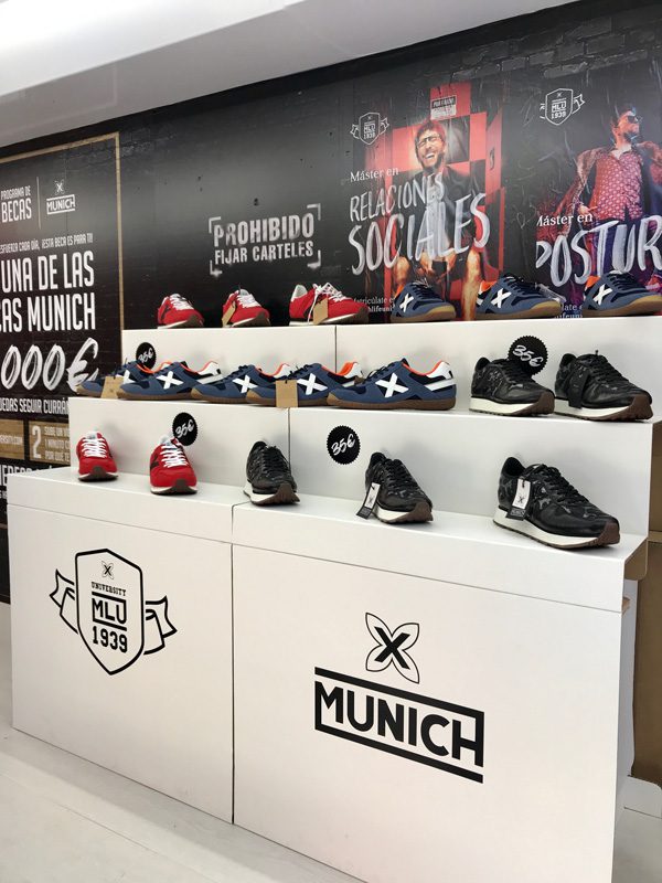 Los expositores diseñados a medida dentro de un proyecto de interiorismo suelen ser especialmente llamativos. La marca Munich suele apostar por ese concepto para sus pop up stores y hemos realizado ya varios proyectos para ellos junto al estudio de Javier Jiménez, Studio Animal. El resultado son unos interiorismos con gran impacto visual, fáciles de reutilizar o reciclar, ágiles de montar y con mucha capacidad de adaptación a las necesidades de la marca.