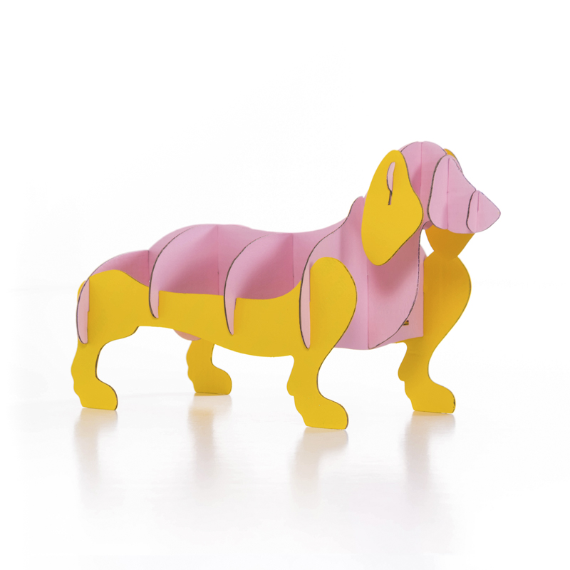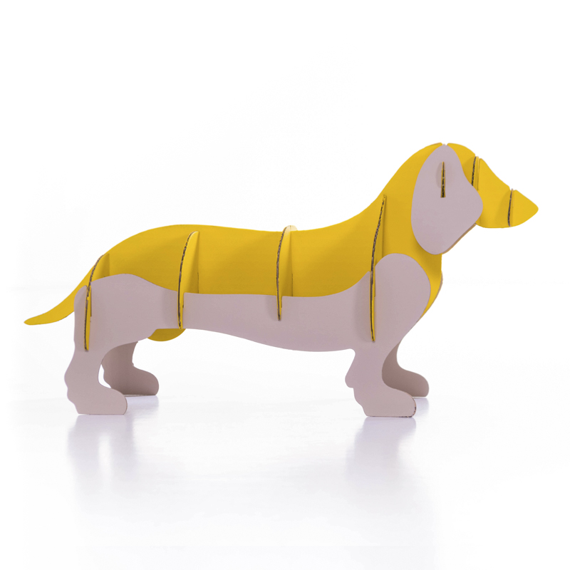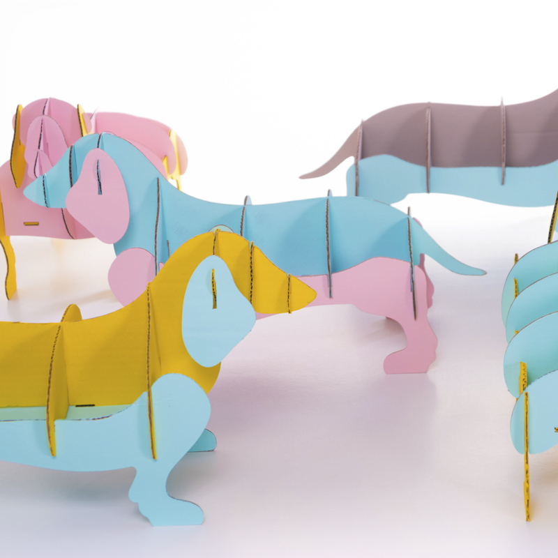 Como este perro salchicha de cartón que creamos para exponer los calcetines de la marca Jimmy Lion.