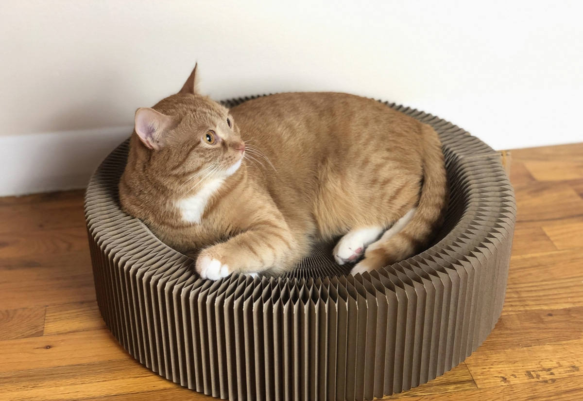 El diseño en cartón llega más allá de donde te puedas imaginar. Aunque sea un material económico, sirve para producir elaborados diseños, como estas sofisticadas y funcionales camas de cartón. ¡La cama que todo gato (o persona) desearía! Y 100% sostenible.