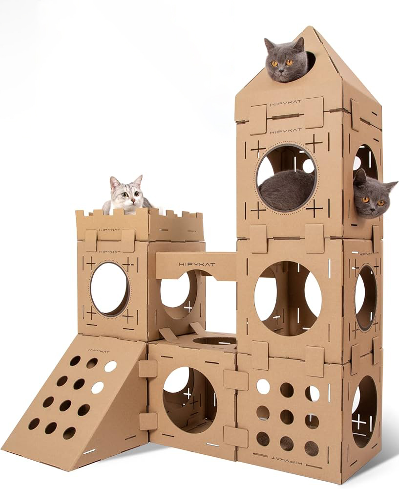 A los gatos les gusta la independencia y una casita de cartón se la ofrece. Además, suelen ser de fabricación tan ligera que las puedes cambiar de sitio tantas veces como quieras. Existen muchos diseños elegantes y divertidos que se adaptan a las necesidades fisiológicas y anatómicas de los gatos. Desde tejados a dos aguas a torres de castillos. Le vendrá bien escalar para hacer ejercicio y evitar el sobrepeso.