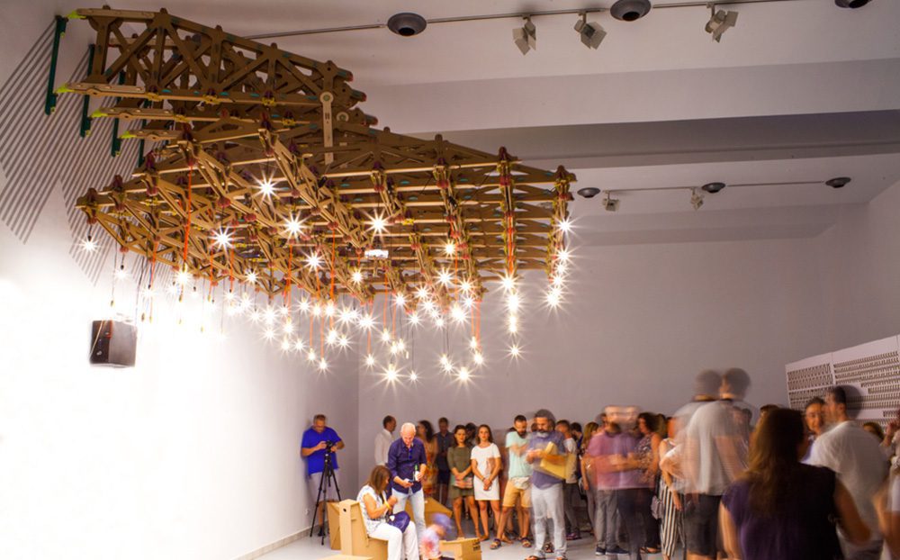Comenzamos el recorrido echando la vista atrás para recordar la lámpara creada por el arquitecto Carlos Jiménez junto al colectivo Casa Leganitos y al programador digital Tom Svilans. Una elaborada pieza con vocación de obra artística y tecnológica, cuyo funcionamiento estaba asociado a la cantidad de público presente y a la forma en que se movían e interactuaban. La enorme cantidad de piezas creadas para su instalación fueron producidas por Cartonlab
