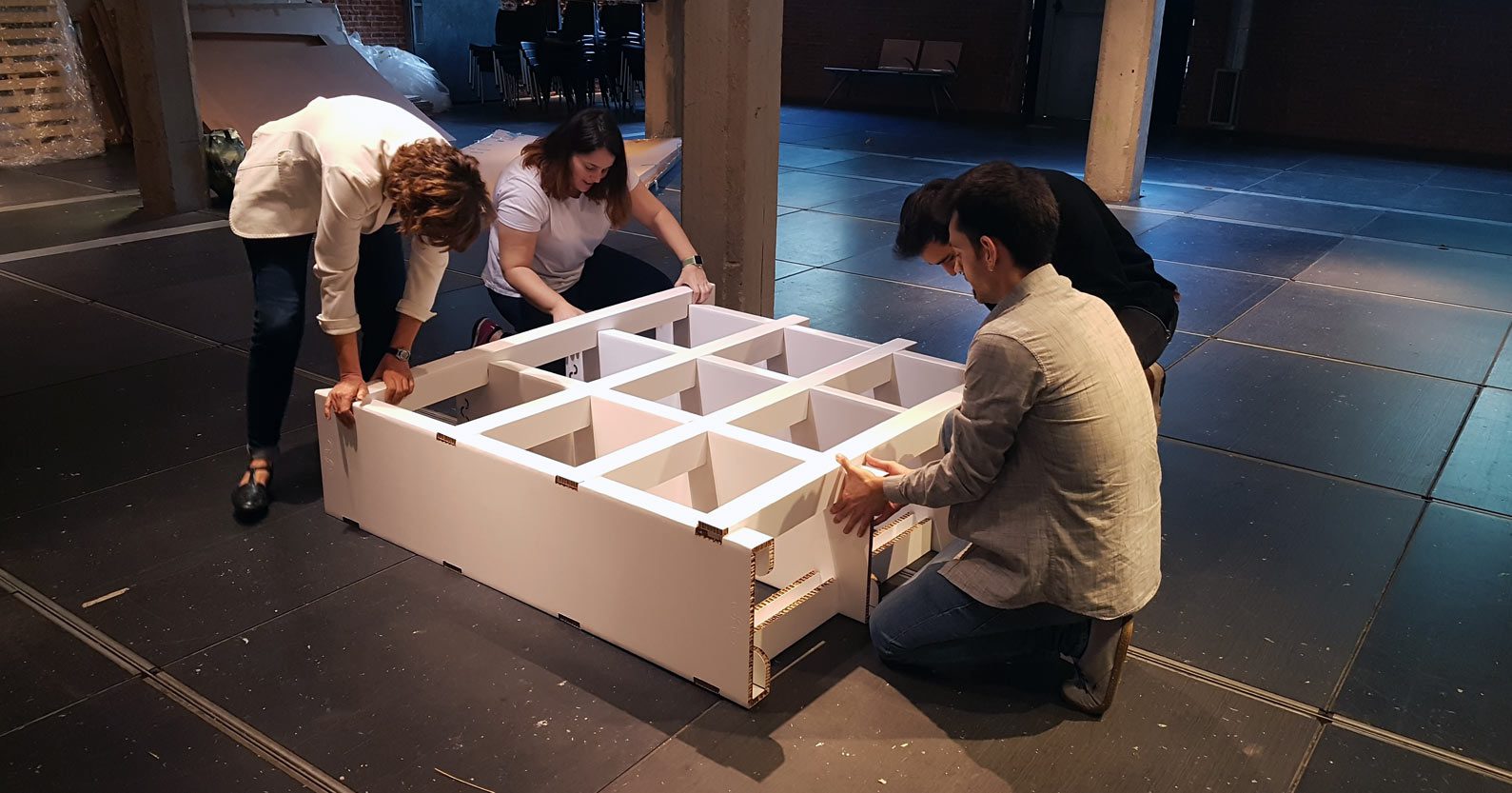 Motivados por nuestra vocación divulgativa, en la última edición de Love Cartón planteamos a la organización la posibilidad de desarollar un curso en los días previos a la inauguración. La respuesta fue espectacular y se agotaron todas las plazas. Los participantes trabajaron de forma individual una propuesta de diseño en todas sus fases, un recorrido que culminó con la evaluación y puesta en común de los diseños realizados como parte de la muestra oficial del evento. En anteriores ediciones, ya habíamos realizado talleres en torno al cartón, montando en equipo varios tipos de muebles de nuestro catálogo.