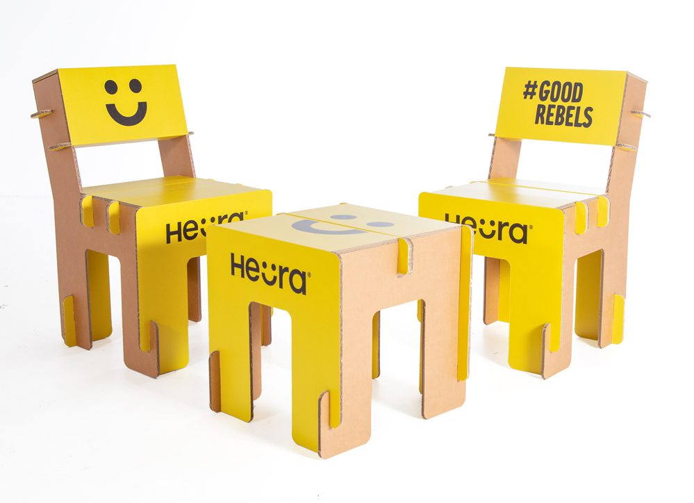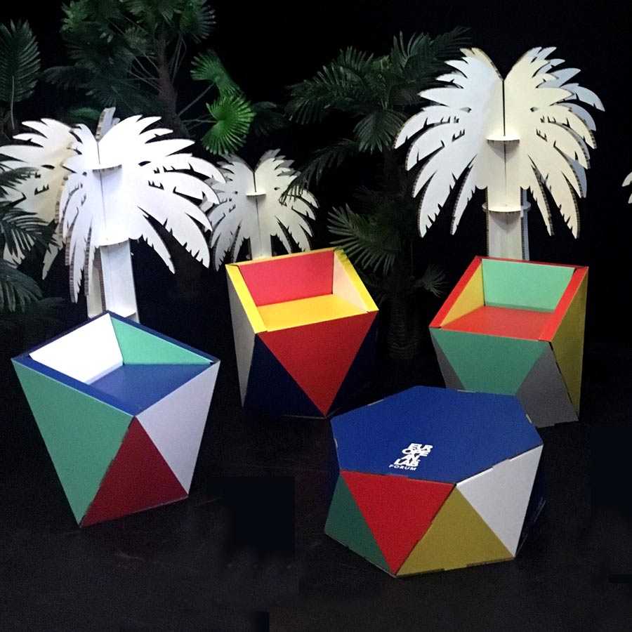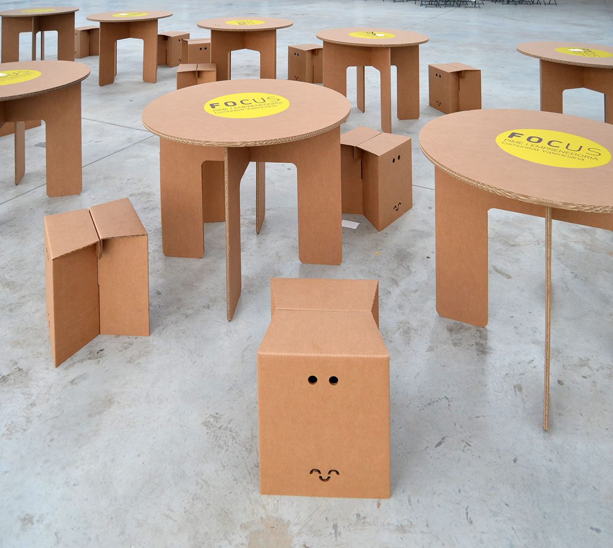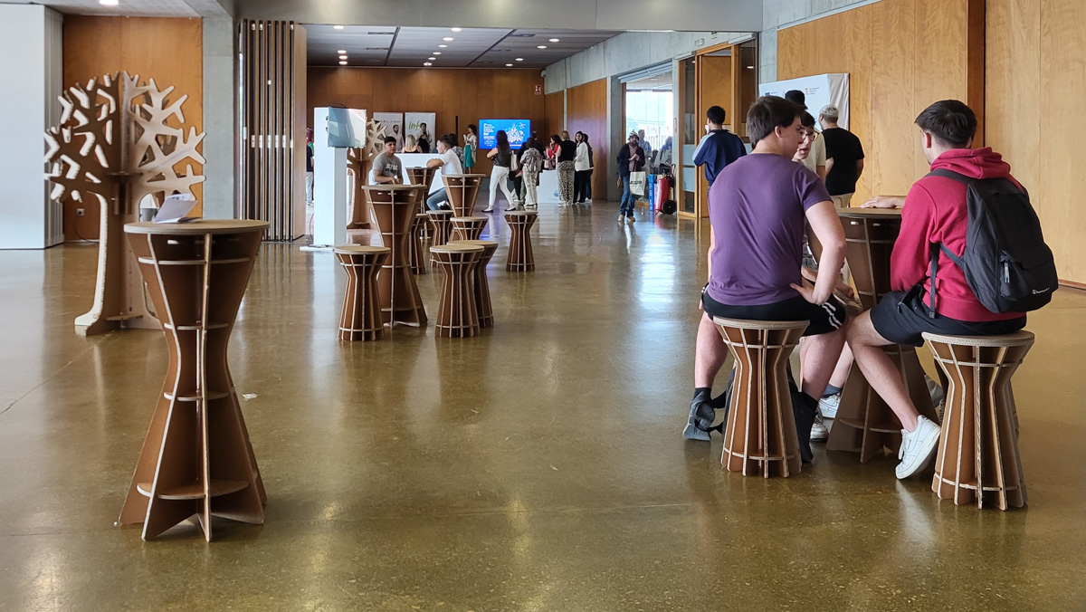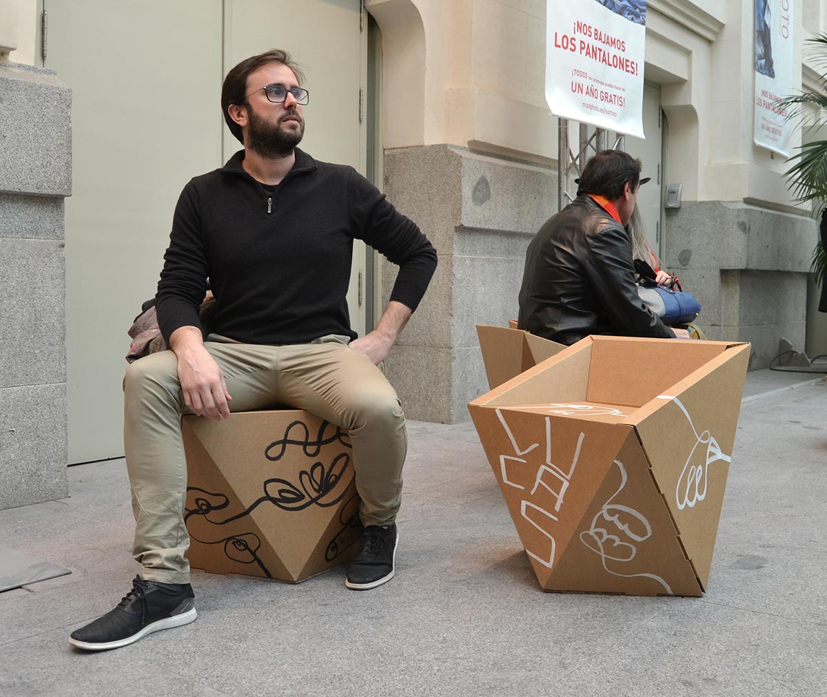 Crea zonas de networking con los taburetes de cartón, o utilízalos para que los visitantes puedan descansar mientras disfrutan de alguna proyección. Son tan ligeros que los propios invitados pueden llevarlos cómodamente de un lado a otro.