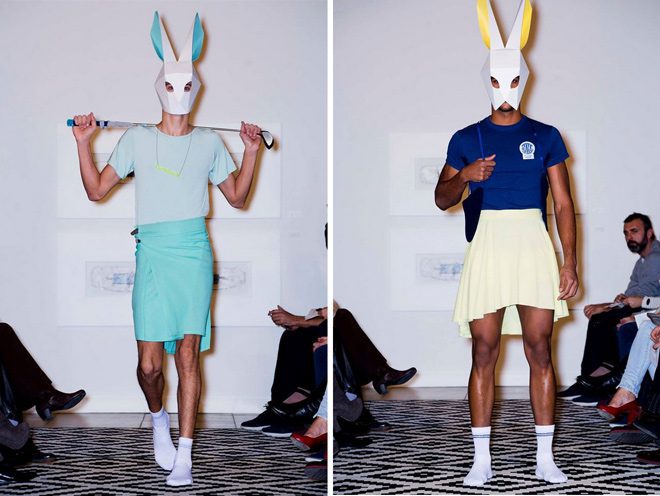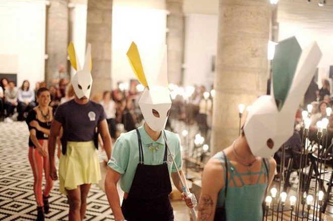 Las máscaras de conejo diseñadas para el desfile de moda Mmod de Las Culpass destacaron en la pasarela por su estética impactante. Estas piezas, elaboradas en cartón, representaron la libertad creativa del evento.