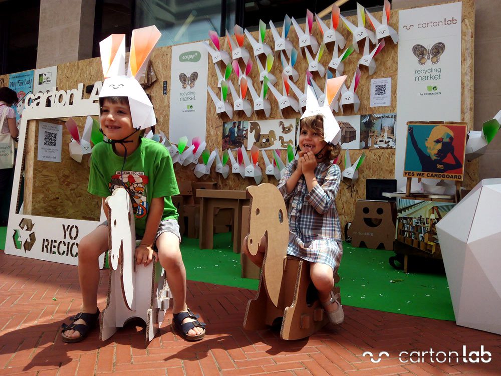 Las lámparas de origami también han sido el eje central de alguno de nuestros talleres, como en la III edición del Recycling Market de Ecoembes, donde los asistentes comprobaron lo fácil que es diseñar con cartón y se llevaron un bonito recuerdo.