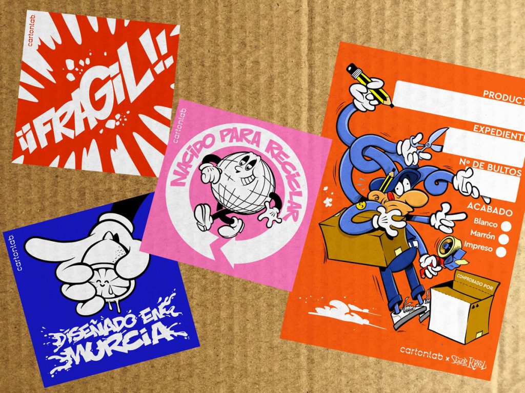 No es ningún secreto, la filosofía de Cartonlab incluye la reutilización y el reciclaje como características principales de nuestros diseños. También, como hemos mencionado ya en este artículo, el orgullo de haber conseguido proyectarnos desde Murcia todo el mundo. Esos mensajes convertidos en pegatina viajan con nuestros paquetes por el mundo. También el clásico enunciado ‘Frágil’, que intenta que las empresas de mensajería apliquen un cuidado extra a nuestros envíos.