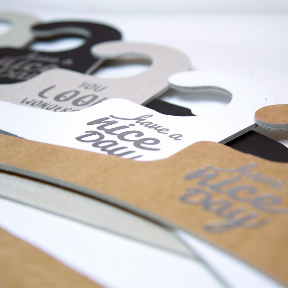 Las perchas de Cartonlab pueden personalizarse fácilmente mediante impresión digital o vinilado. Esto las convierte en una poderosa herramienta de comunicación visual para reforzar tu branding en showrooms, tiendas efímeras o ferias. Podemos adaptar el diseño a tu identidad corporativa, ya sea con gráficos, colores o textos. Es una forma efectiva y estética de destacar y conectar emocionalmente con tu público. Porque cada detalle cuenta, también cuando se trata de colgar una prenda.