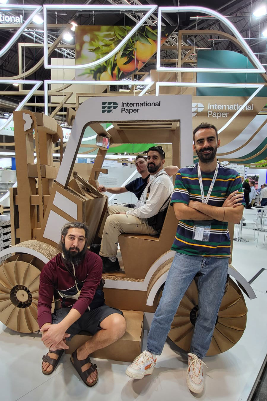 ¿Por qué no llevar la creatividad un paso más allá? Desde esferas gigantes que simulan planetas corporativos hasta maniquíes de tamaño natural construidos a base de capas de cartón, o incluso un camión, las posibilidades son casi infinitas. Estas figuras de gran tamaño no solo son un foco de atracción, también ofrecen un fondo espectacular para las fotografías. Además, se integran perfectamente en el espacio del stand, contribuyendo a una experiencia visual memorable y coherente con la temática del evento.