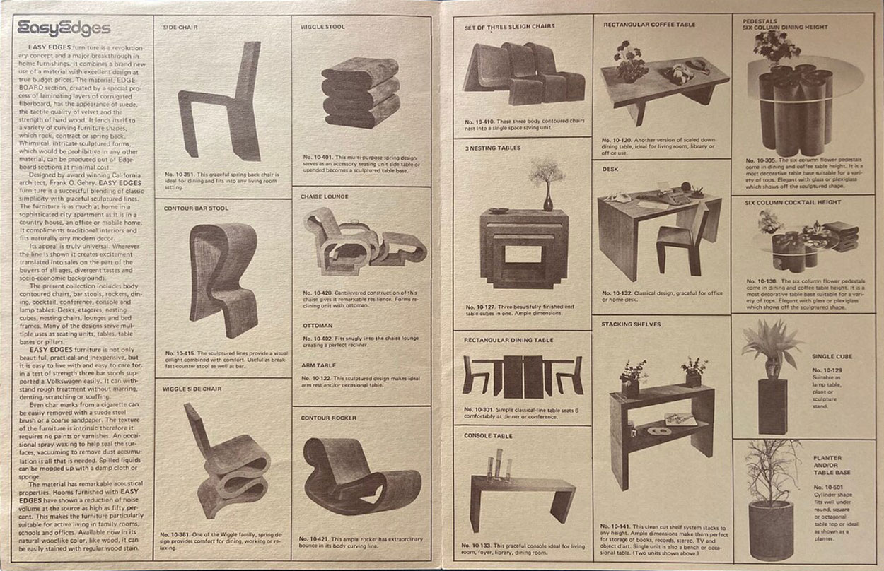 Desde los años 60, diseñadores como Riki Watanabe, Peter Murdoch y Peter Raacke experimentaron con el cartón en mobiliario. Sin embargo, Frank Gehry cambió la percepción del material con su serie Easy Edges (1969-72).