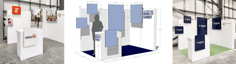 En una primera etapa los diseños están enfocados fundamentalmente al mundo de los eventos y las ferias, ofreciendo soluciones modulares, prácticas, funcionales y fáciles de instalar para componer cualquier tipo de stand y mobiliario asociado. (traseras, mostrador, sillas, mesas, portafolletos, decoración, etc.)