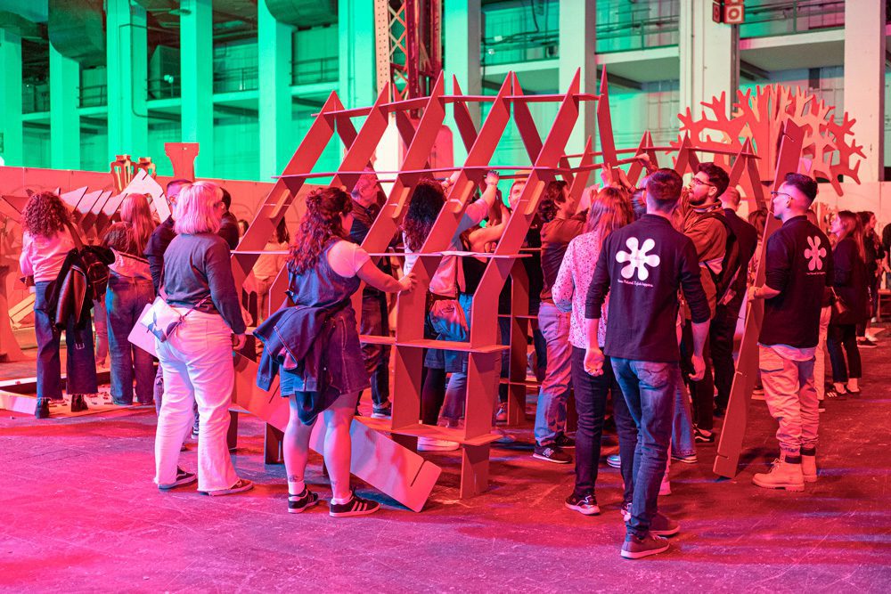 En el caso de empresas grandes con varias sedes o centros de trabajo, suelen aprovechar la ocasión para reunir grupos de las distintas ubicaciones en espacios grandes. El diseño en cartón se adapta perfectamente a este tipo de actividades multitudinarias. Puedes encontrar figuras y muebles de todo tipo como opción idónea para montar en equipo, o encargar elementos personalizados relacionados con tu imagen de marca o con la temática elegida. O combinar ambas opciones como hizo la agencia Open Mind en el evento que organizaron para una conocida franquicia de academias de inglés.