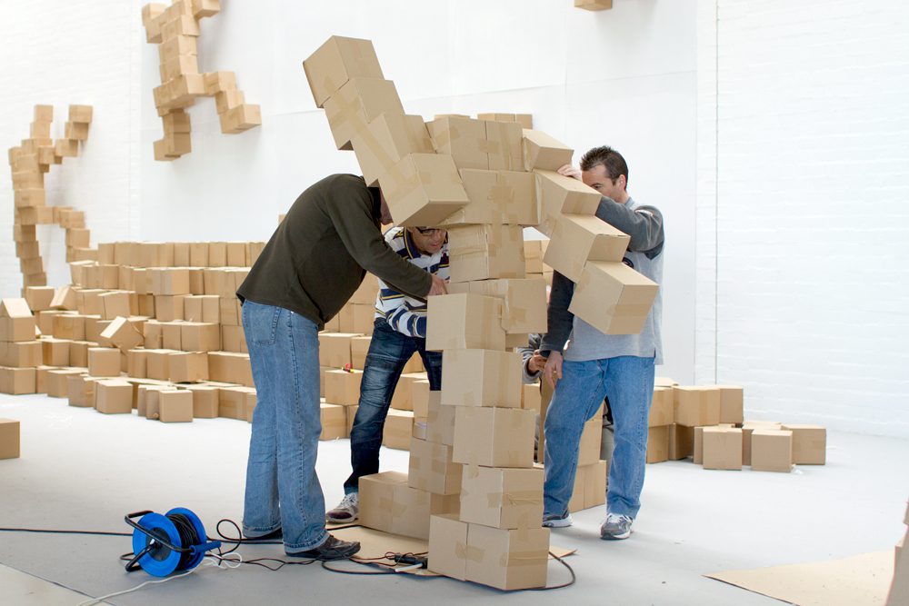 La construcción modular fomenta el espíritu de equipo por lo interactiva que resulta. Además, deja mucho espacio a la imaginación. Se trata de crear una figura muy sencilla de cartón a modo de pieza constructiva y emplear un espacio amplio para que cada equipo construya lo que se proponga. Es una actividad motivadora por lo que supone de trabajo manual y reparto de tareas dentro de un grupo.