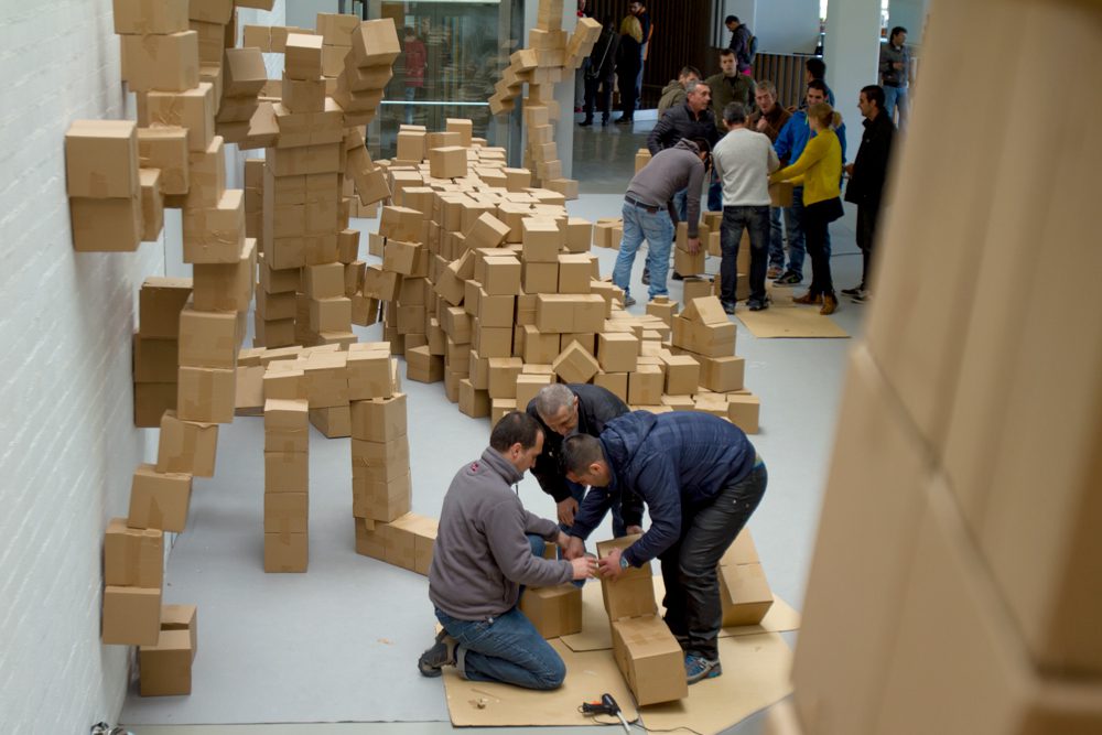 Cuando hablamos de animales gigantes de cartón siempre pensamos en lo que le gustan a los niños, aunque lo cierto es que encantan también a los adultos. El montaje suele tener sus complicaciones, lo que hace el reto más interesante aún para cumplirlo en equipo. El resultado es tan impresionante como entrañable.