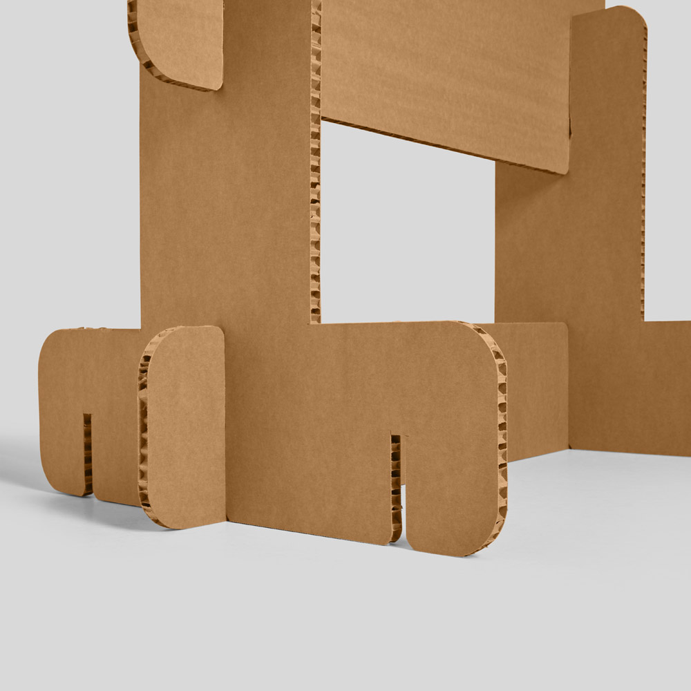 All our designs can be assembled and disassembled quite easily and are reusable, as long as the material is carefully treated and stored in the appropriate conditions (avoiding moisture, temperature changes and direct sunlight). In any case, the very nature of cardboard and the fitting systems can cause it to wear out or deteriorate over time. A cardboard chair, for example, can withstand up to 120 kg of weight. Each product is tested according to its function; therefore, it is essential to use it according to its purpose and assemble it carefully according to instructions.