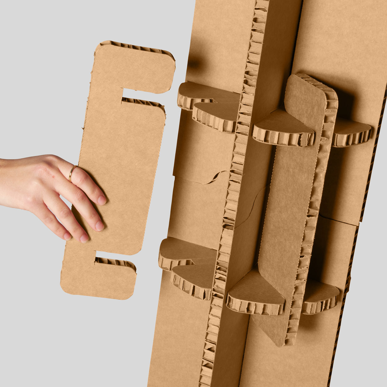 All our designs can be assembled and disassembled quite easily and are reusable, as long as the material is carefully treated and stored in the appropriate conditions (avoiding moisture, temperature changes and direct sunlight). In any case, the very nature of cardboard and the fitting systems can cause it to wear out or deteriorate over time. A cardboard chair, for example, can withstand up to 120 kg of weight. Each product is tested according to its function; therefore, it is essential to use it according to its purpose and assemble it carefully according to instructions.