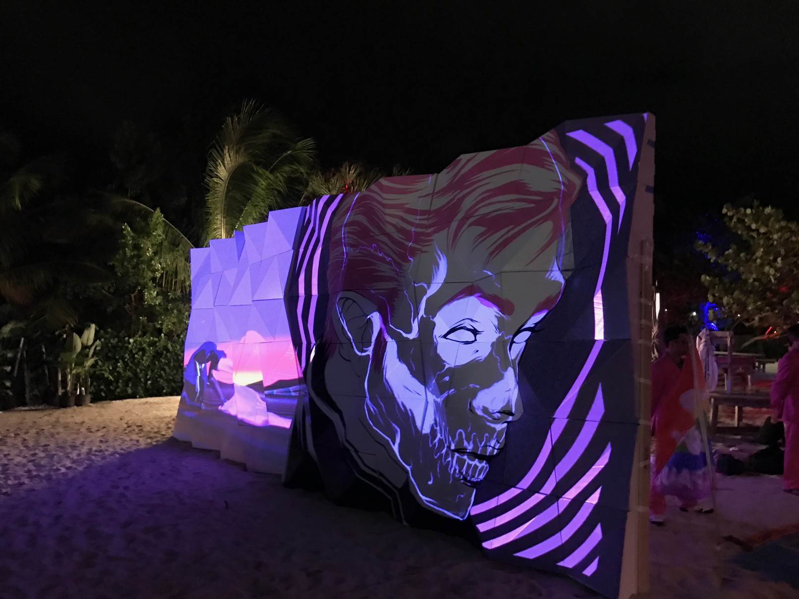 Also, we designed and produced 8 walls (6’x 8′) with a no-regular surface. These walls were used by the artist to create amazing projections and images. The walls were set up on the beach; the final result did not leave anyone indifferent.
