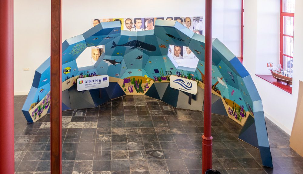 With a design almost identical to that of the geodesic dome for toy libraries, you can count on an ideal space to complete an exhibition. Customizing the surface with digital printing on the inside and mounting only one part of the modules, we have an original decorative wall. In this case with marine motifs, in keeping with the theme of the sample. Installation requires some technique, but is really easy for skilled hands.