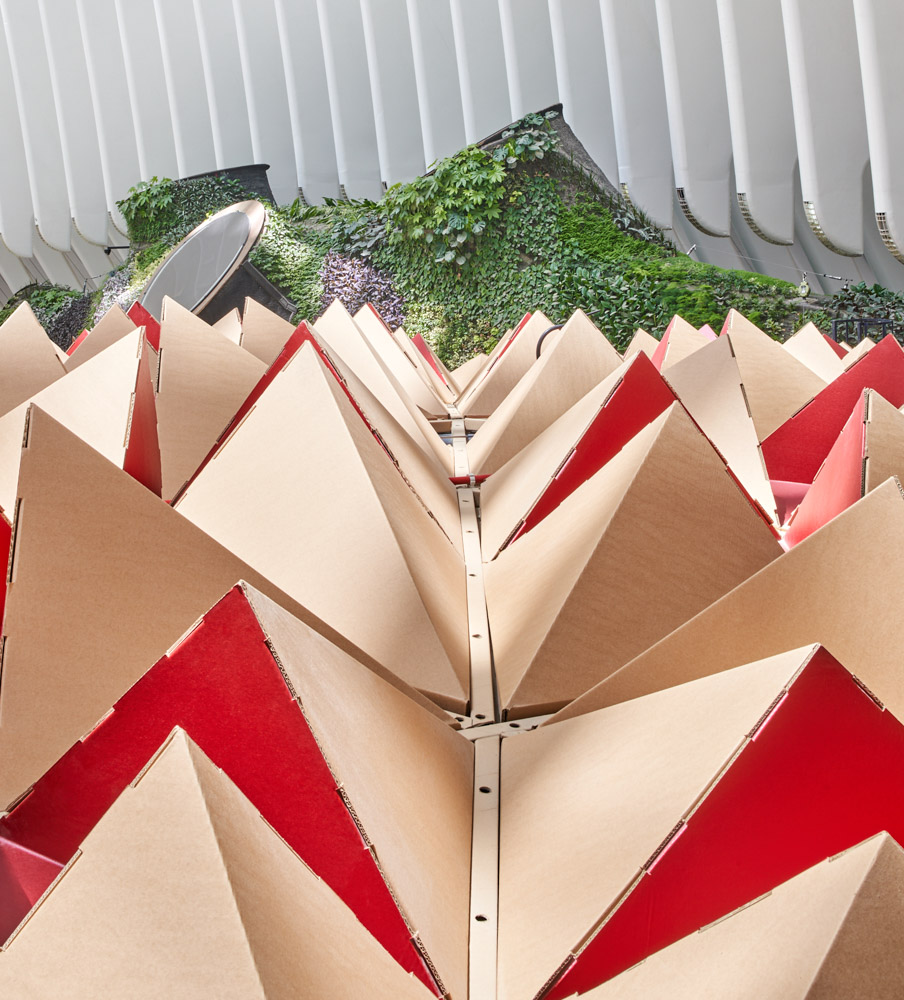 The launch of the new CaixaForum Valencia is an architectural and cultural event. The project was born when Enric Ruiz-Geli and his studio Cloud 9 won the ideas competition to revitalize Calatrava’s Ágora building, inaugurated in 2009 and barely used since then. The result has been a large and renovated space that houses exhibition halls, a restaurant, a bookstore, a vertical garden and an auditorium for 300 people for which we have made the extensive cardboard roof. A team work led by Cloud 9, (Enric Ruiz-Geli) and Xpiral Arquitectura (Javier Peña Galiano) and Cartonlab