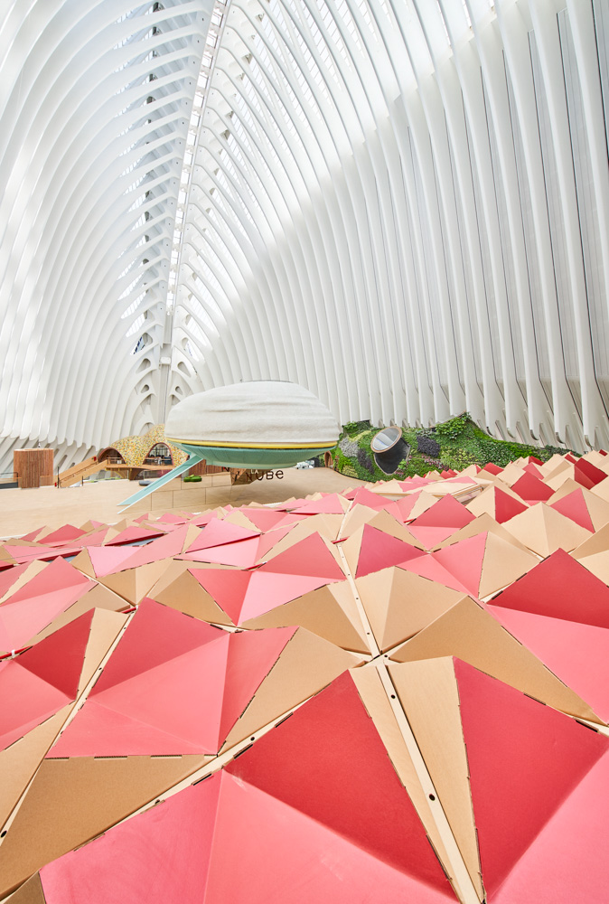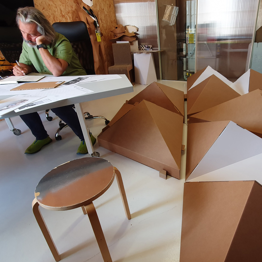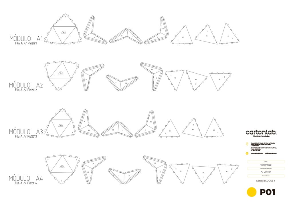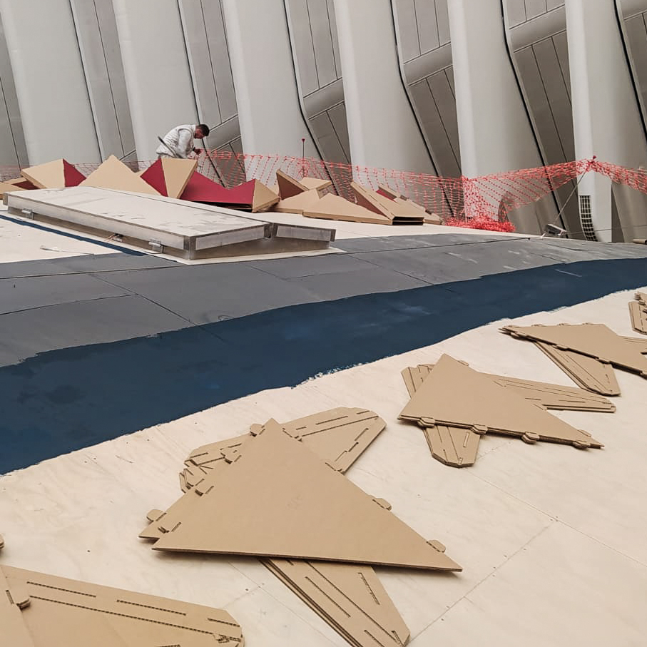 It was produced with millimeter precision, cutting the cardboard with a CNC machine. However, when assembling on a large scale, there are usually certain margins of error in the trades involved. To compensate for this, we opted to install the final parts of each block and the areas of the exutories in a final phase. In this way, everything ended up fitting together perfectly.