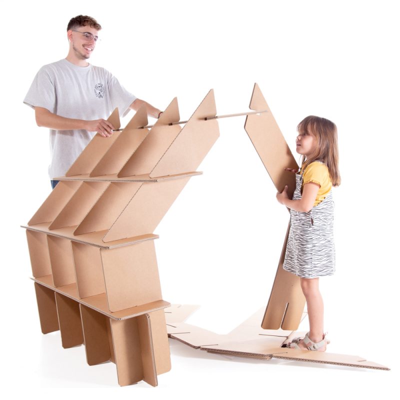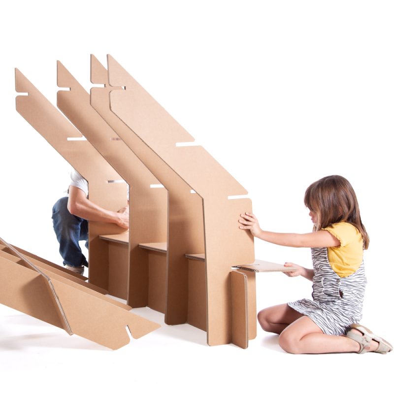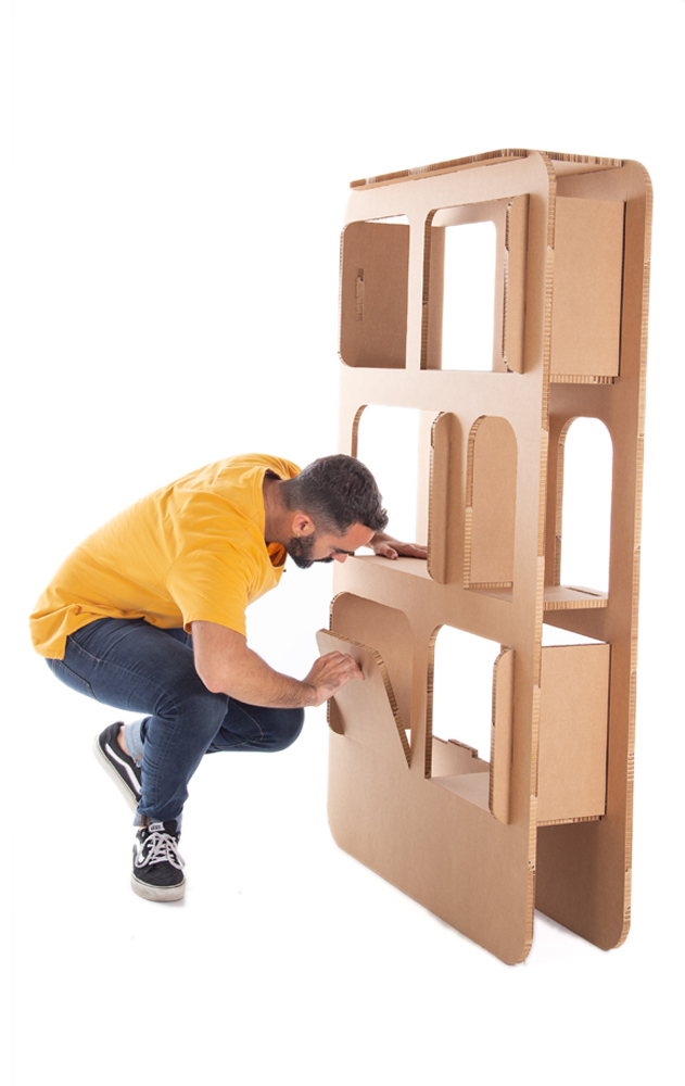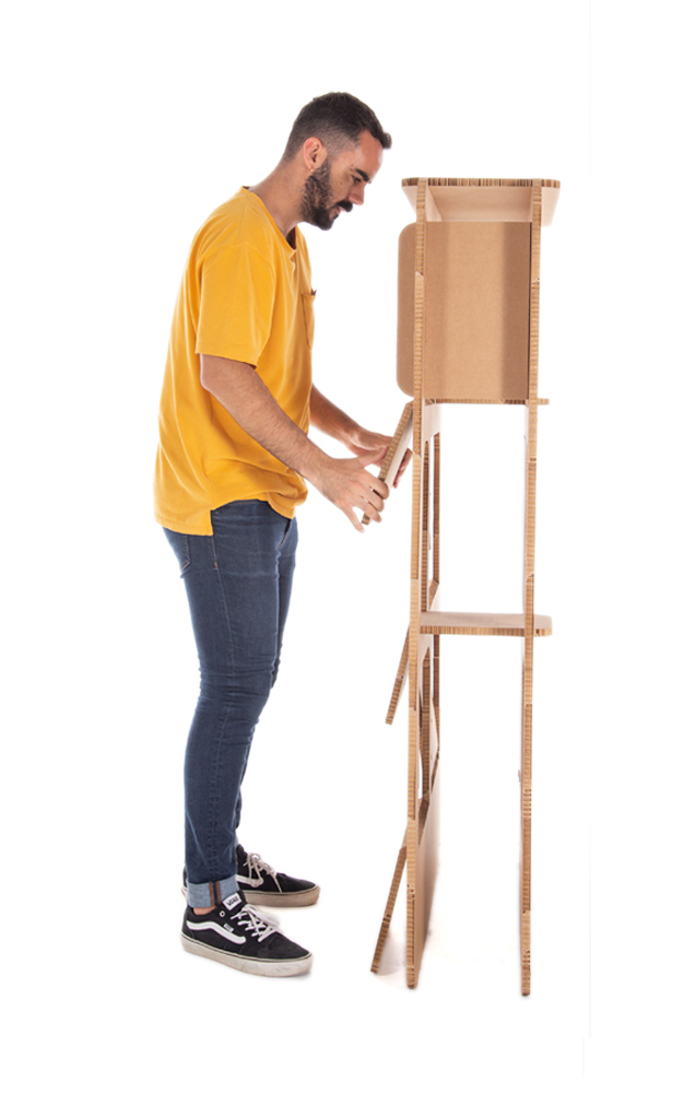 Unlike conventional furniture, the mounting of a cardboard shelf is made in Few minutes, fitting some pieces with others, without the need for adhesives or special tools. In addition to being produced with FSC certified materials, they are 100% recyclable.