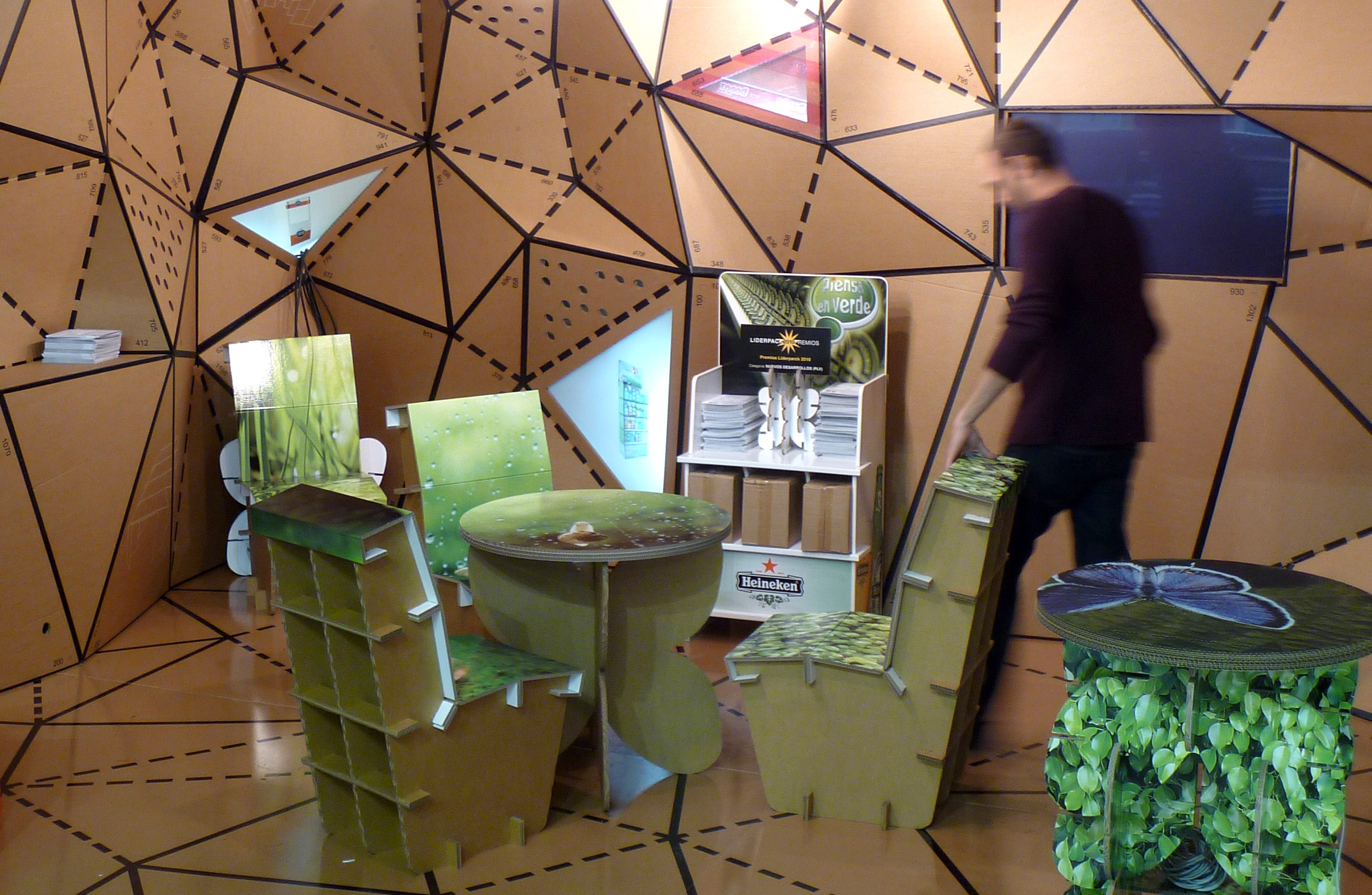 We designed this small stand entirely in cardboard for drawing attention in a trade show for big companies with deep pockets, and guess what? We got it. All eyes turned to our design. Thanks to our friends of Ability Diseño Gráfico for asking us to create this project and put the production in place. The stand was featured in the European famous Graphispag trade show in Barcelona Spain.