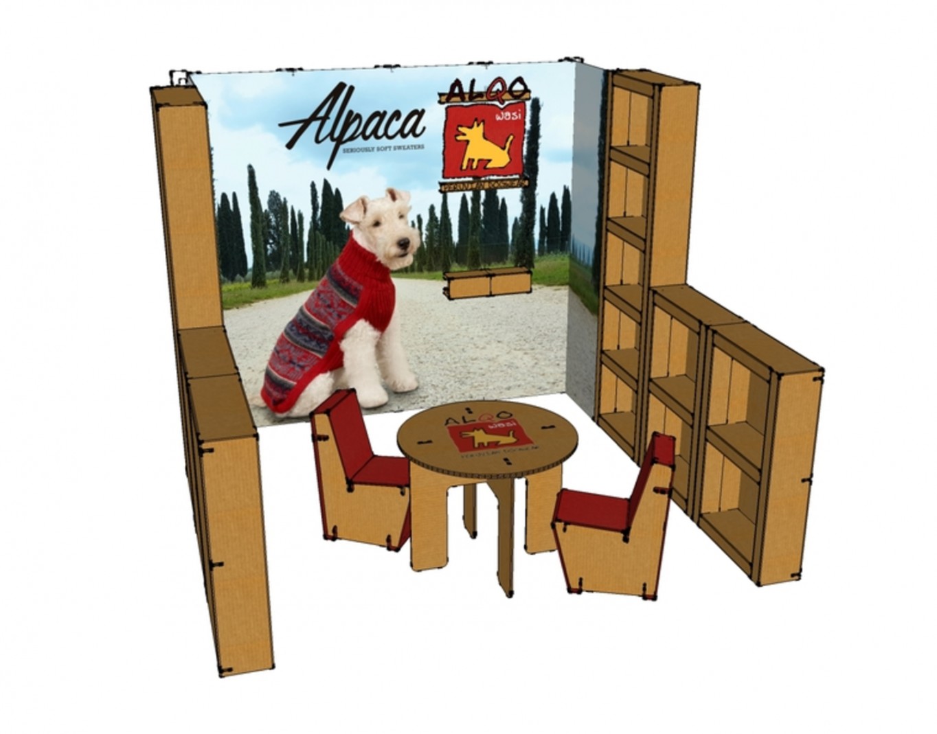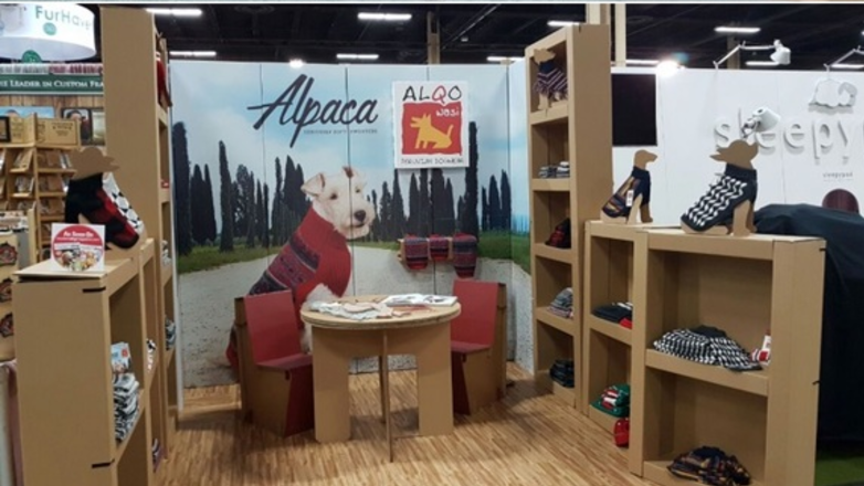 Alqo Wasi is an innovative company from Peru which creates exclusive dog clothes with alpaca fiber. The company took part in the  SuperZoo trade show, the National Show for Pet Retailers, with a personalized, sustainable booth designed by Cartonlab.