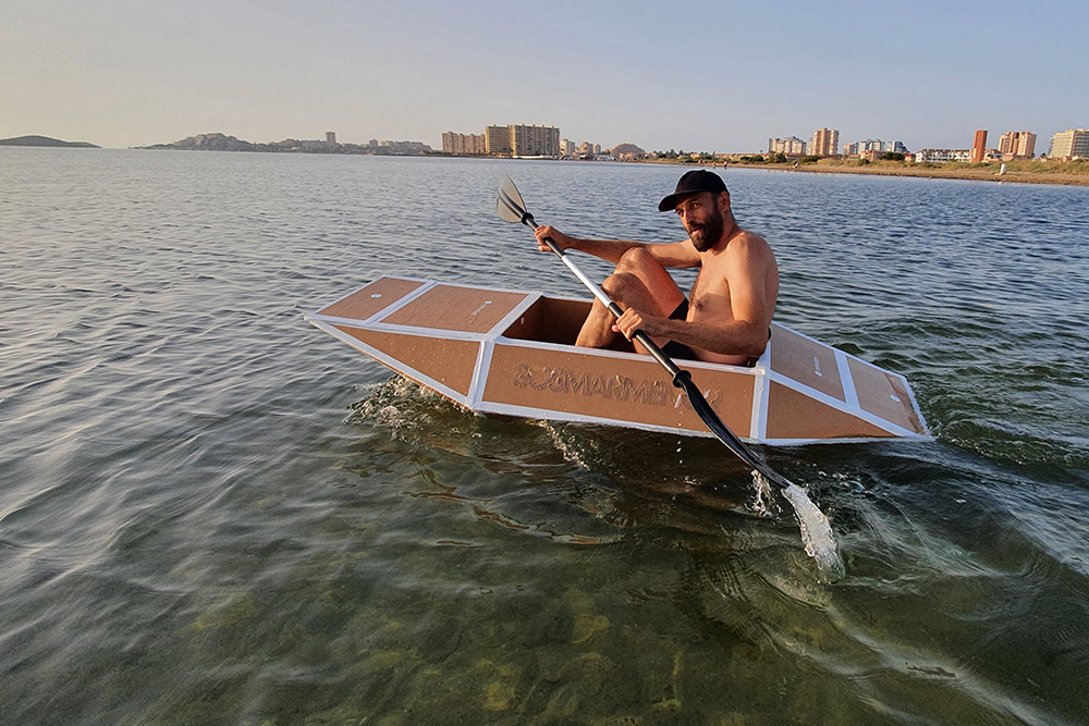 ET de la mer nous sommes allés à une piscine dans notre deuxième test aquatique. Ce prototype de kayak en carton a été apprécié en direct et en direct pendant le Festival Transtropicale (Alicante), où nous avons été invités à faire l’une des brèves présentations de la journée.
