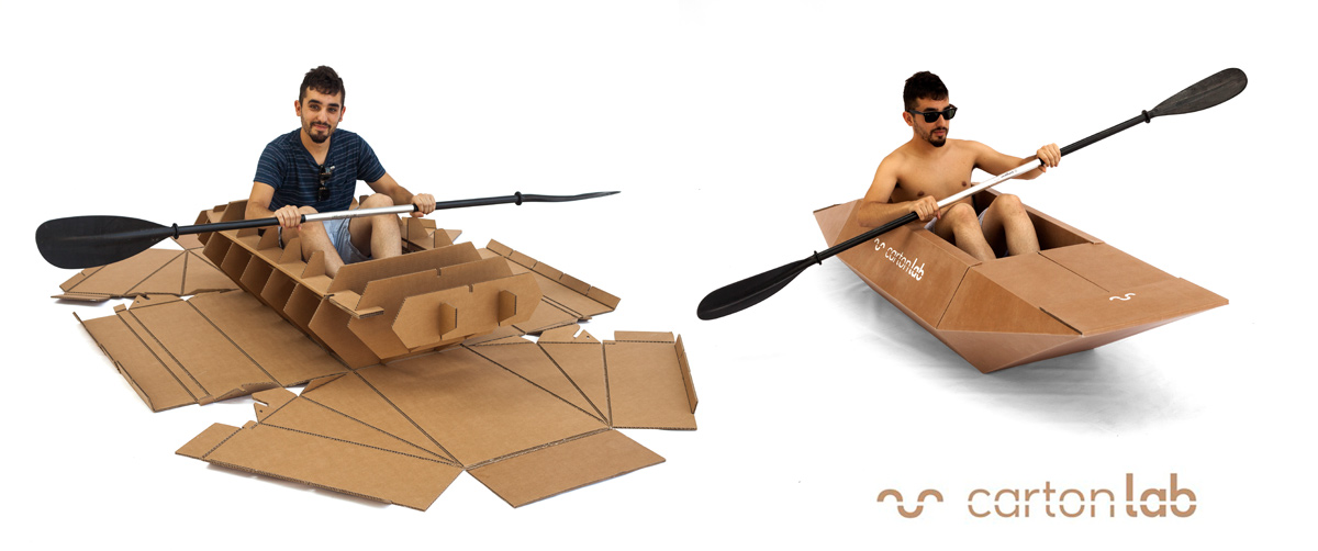 Pour la conception du kayak en carton, nous avons utilisé comme référence l’exercice que le professeur d’ingénierieDave Friant a demandé à ses étudiants de l’Université d’Auburnen 1982 : construire un Kayak en carton qui passerait le test denaviguer sur une distance de 100 mètres. Toute son expérience est phénoménalement illustrée dans le livre : ‘Le livre du bateau en carton’ (Réédité en 2009).