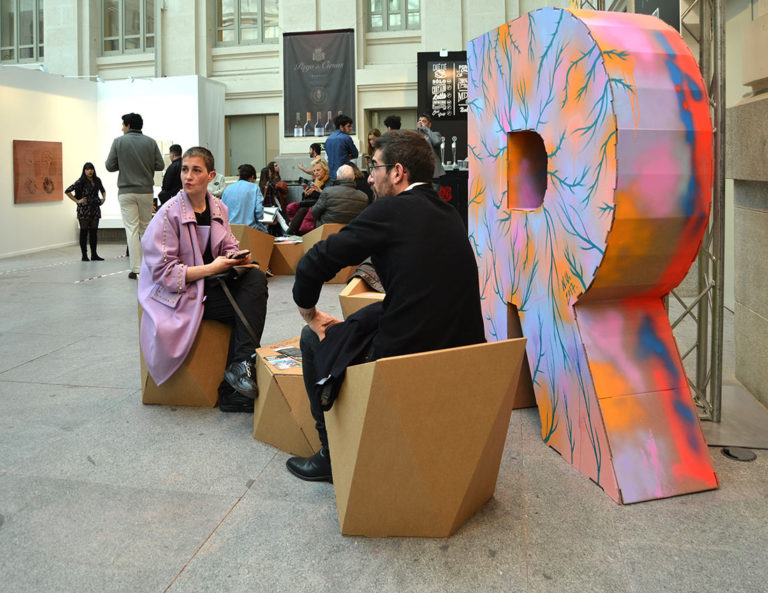 Mobilier en carton pour événements. L’expérience Art Madrid