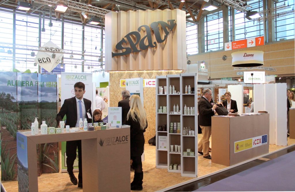 Nous avons participé à l’équipe qui a rendu possible la conception du stand ICEX pour Vivaness 2017, le salon international des cosmétiques naturels et biologiques qui s’est tenu à Nuremberg. Lors de l’édition précédente, nous avons également conçu le pavillon espagnol, où 5 entreprises présentent leurs produits fantastiques.