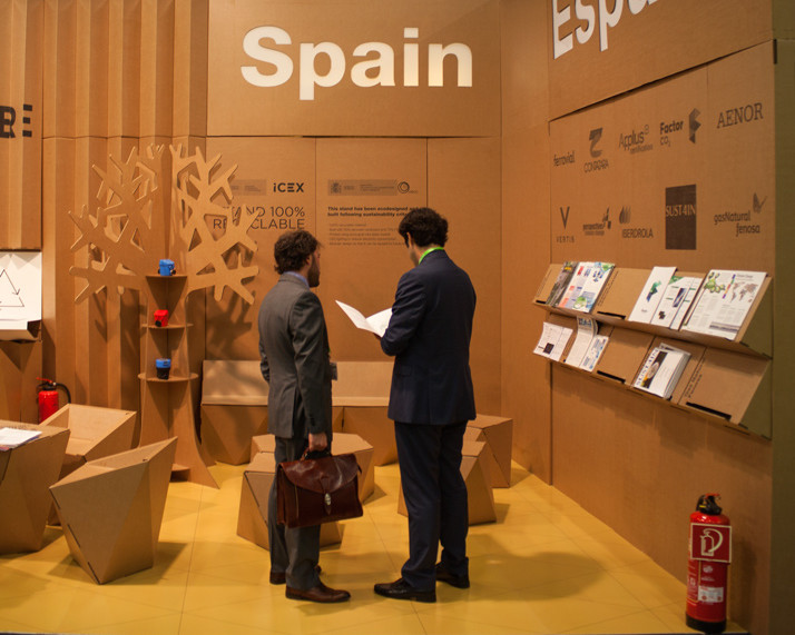 Dans ce cadre, l’ICEX a encouragé la participation de 10 entreprises espagnoles pour présenter leurs activités concernant le changement climatique, les marchés du carbone et les opportunités des secteurs connexes dans les technologies et stratégies à faible émission de carbone. Il ne s’agissait pas d’un projet de conception de stand commun pour les foires commerciales ; c’était une occasion de tirer le meilleur parti des avantages du carton et de les mettre au service de l’ICEX et de ses entreprises associées.