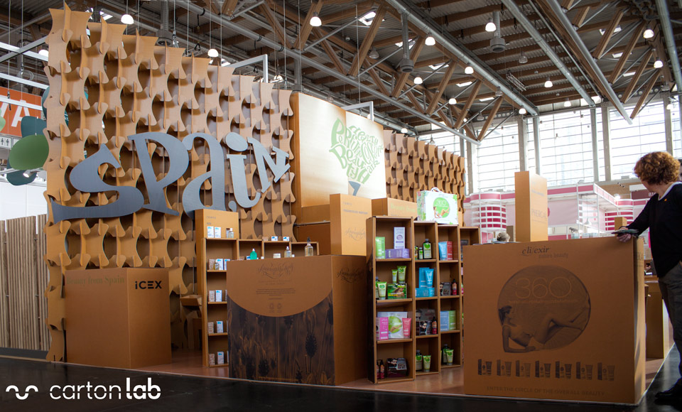 Notre société cartonlab a été chargée de réaliser la conception structurelle, la coordination de la production et le montage du stand Icex, Espacio España, à la foire Biofach – Vivaness de Nuremberg.