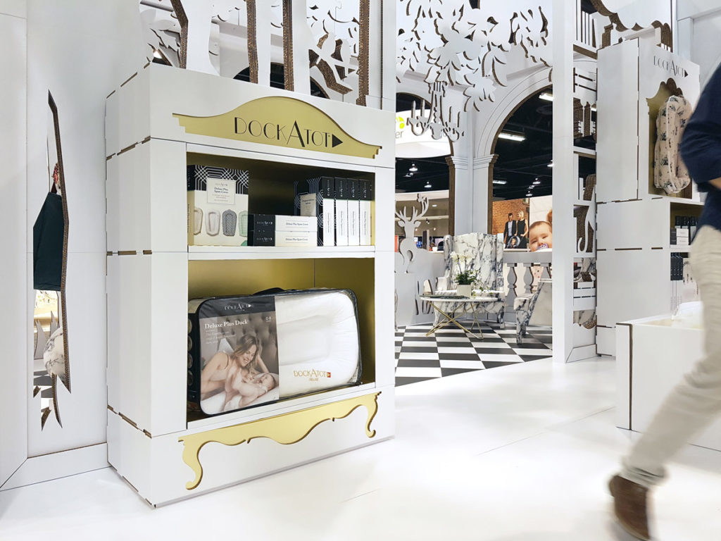 Nous avons récemment participé à la production du stand en carton pour la marque DockATot au JPMA Baby Show à Anaheim (Los Angeles). DockATot est la filiale américaine de Sleepyhead , la société fondée par l’entrepreneuse suédoise Lisa Furuland, créatrice d‘une ligne à succès de designs innovants pour bébés, parmi lesquels se distinguent ses « pods » matelassés aux imprimés exclusifs. Un produit qui, par sa simplicité, offre des possibilités infinies et a révolutionné son secteur.