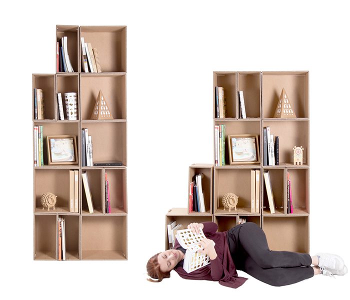 Le étagères en carton sont légers, résistants et100% écologiqueparfait pour meubler une maison, un bureau, des espaces de coworking ou de vente. Ils sont aussi légers que résistants (ils supportent jusqu’à 250 kg de poids). Contrairement aux meubles traditionnels, lemontage d’une étagère en carton est fabriquée enquelques minutes, emboîtant certaines pièces avec d’autres, sans avoir besoin d’adhésifs ou d’outils spéciaux. En plus d’être produits avec des matériaux certifiés FSC, ils sont 100% recyclables.