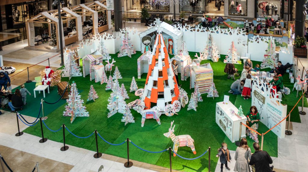 Las actividades infantiles en centros comerciales son muchas y variadas. Sus organizadores aprovechan la intensa afluencia de público familiar para darle vida a sus grandes espacios. Con la llegada de fechas como la Navidad, se multiplican las propuestas y con ellas la demanda de una decoración creativa, interactiva, y también sostenible. El diseño en cartón es la solución ideal para cubrir estas necesidades.
